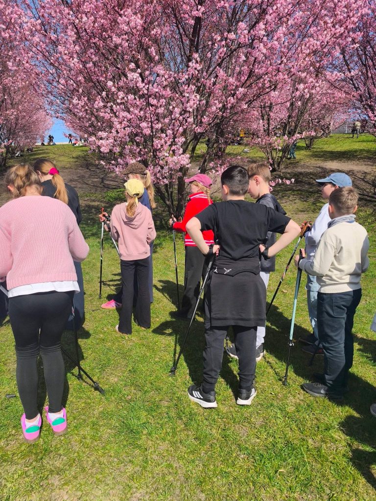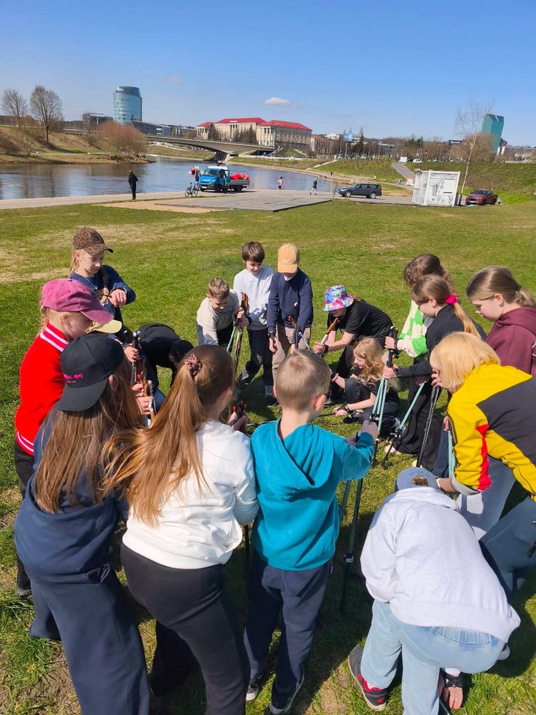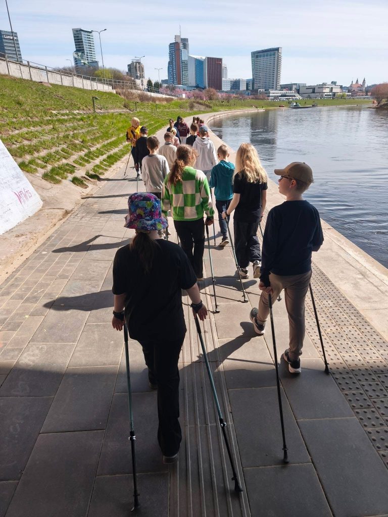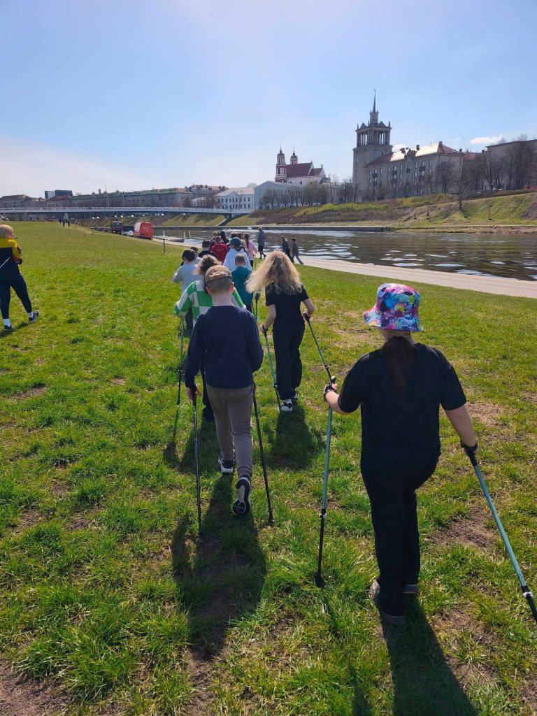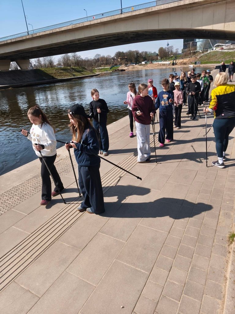 Gegužės 15 dieną 4c klasės mokiniai dalyvavo aktyvioje fizinio ugdymo pamokoje už mokyklos ribų – gryname ore išbandė šiaurietiško ėjimo veiklą pagal projektą „Vilnius yra mokykla“.