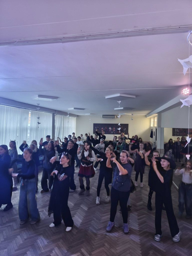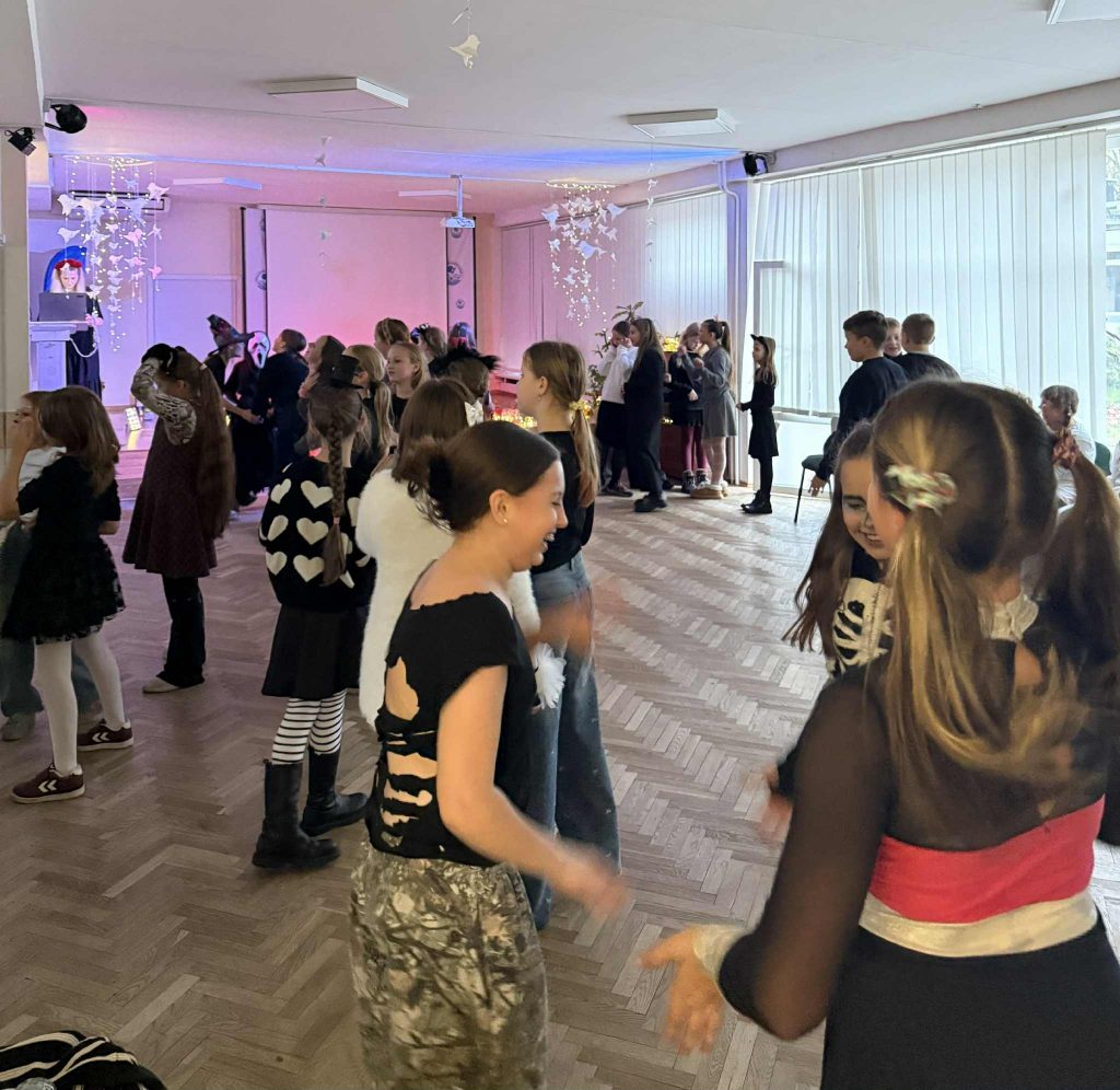 Spalio 31 dieną mokykloje vyravo šokiai, juokas ir tikros Helovyno nuotaikos! Diskotekos metu mokiniai linksminosi, šoko ir džiaugėsi kartu praleistu laiku – salėje netrūko geros muzikos, šypsenų ir išradingų kostiumų.
