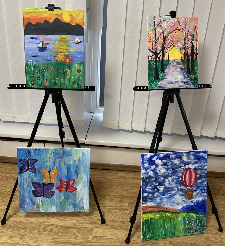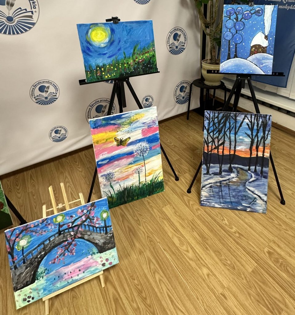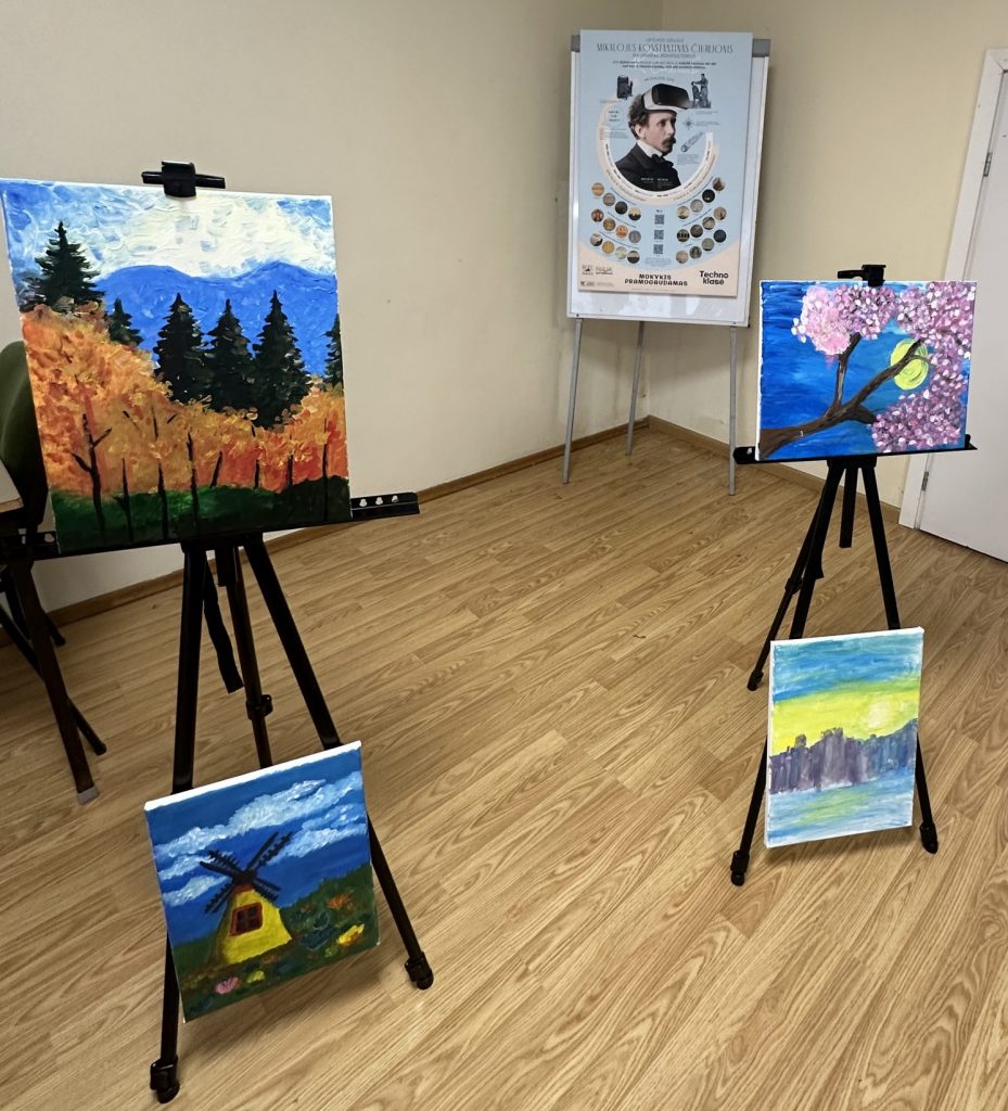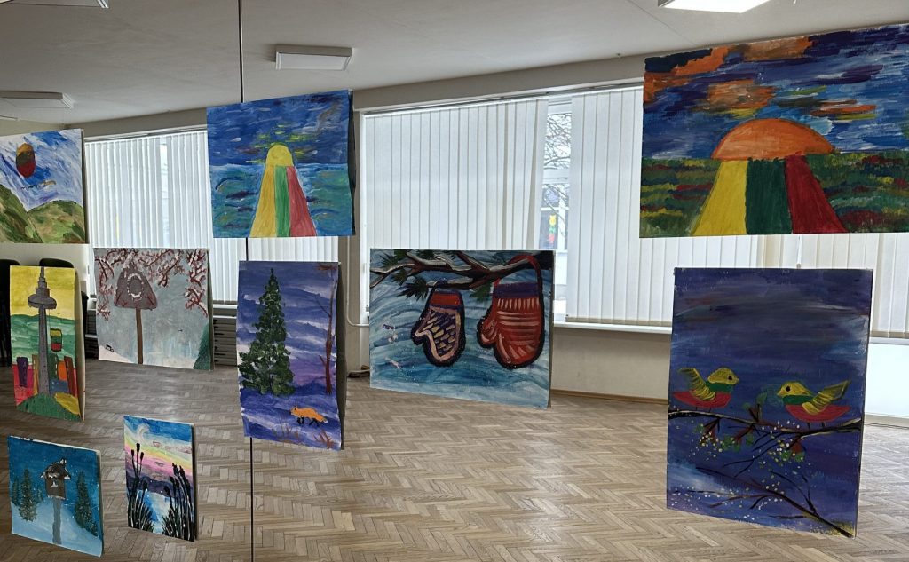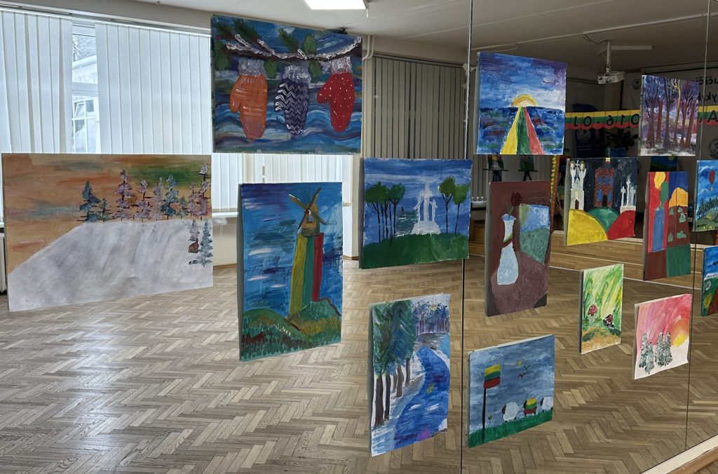 Artėjant Vasario 16-osios minėjimui, dailės būrelio mokiniai kartu su mokytoja Neringa surengė kūrybinių darbų parodą „Piešiu Lietuvą“.