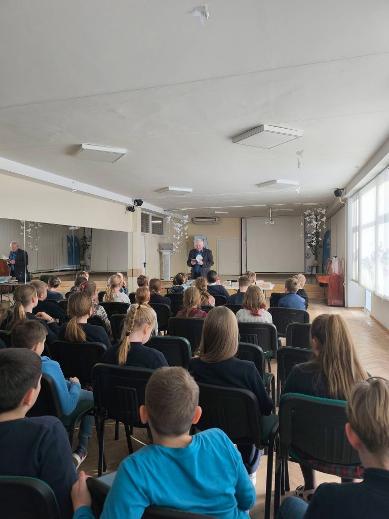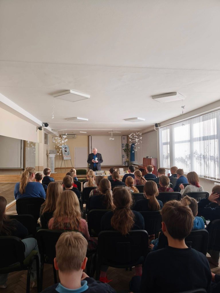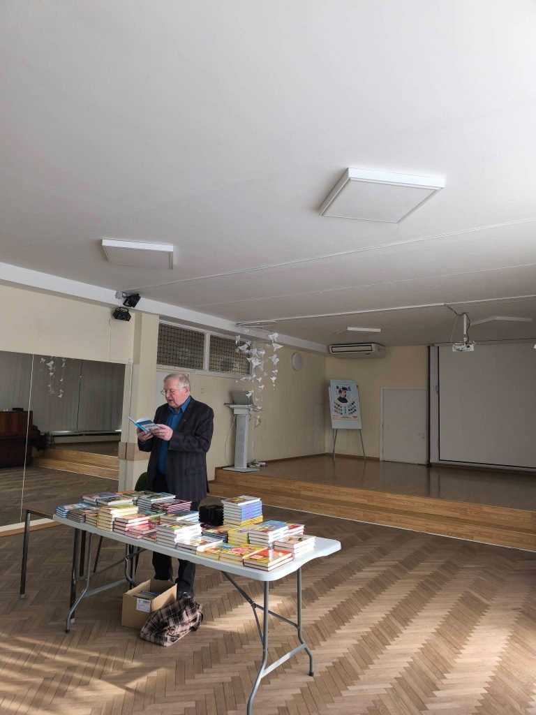 Sausio 19d. mokykloje lankėsi rašytojas Vytautas Račickas. Susitikimo metu jis papasakojo, kada, kaip ir kodėl pradėjo rašyti, atskleidė kelių savo knygų atsiradimo istorijas, dalijosi asmeniniais prisiminimais bei perskaitė smagias ištraukas iš savo kūrinių.