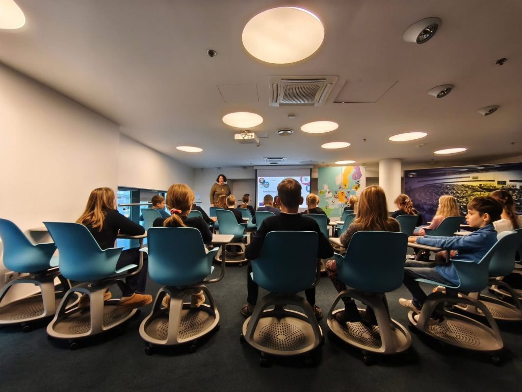 Vizito metu mokiniai taip pat dalyvavo interaktyvioje viktorinoje, kurios metu smagiai ir įdomiai gilino savo žinias apie Europos Sąjungą, jos šalis, kalbas ir kultūrų įvairovę.