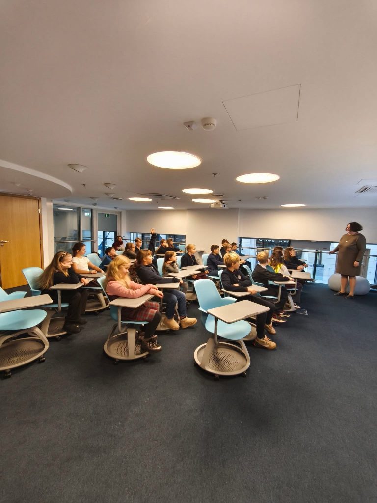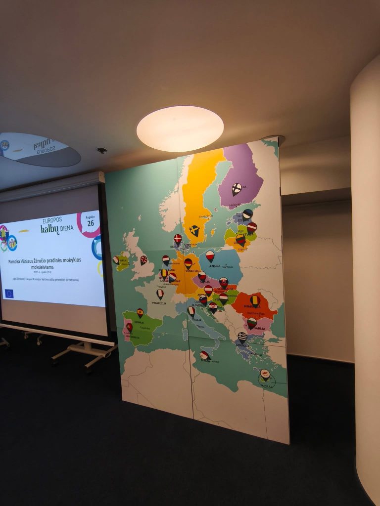 Spalio 20 d. 4c klasės mokiniai kartu su mokytojais lankėsi Europos Komisijos atstovybėje Lietuvoje, kur turėjo išskirtinę galimybę susipažinti su šios institucijos veikla ir vertėjo profesijos užkulisiais.
