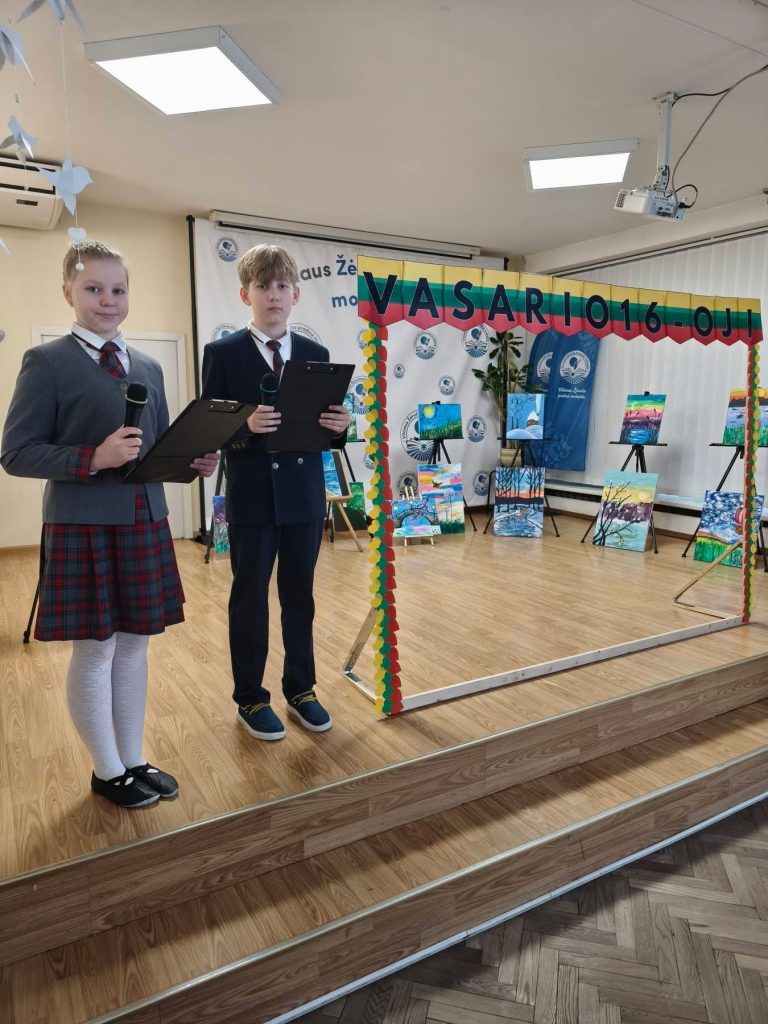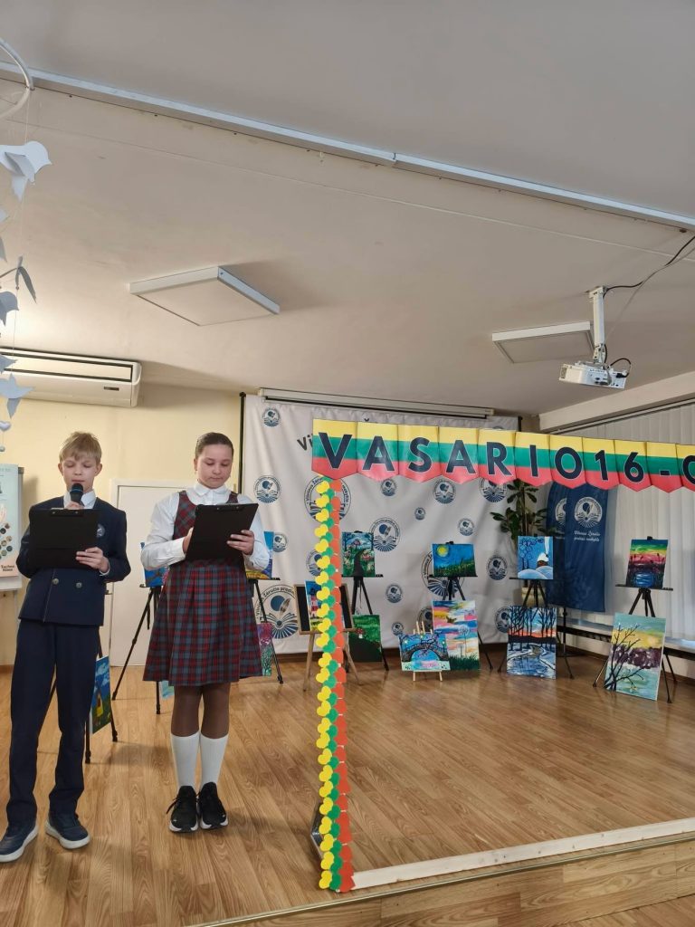 Vasario 12 dieną mokykloje iškilmingai paminėjome Vasario 16-ąją – Lietuvos valstybės atkūrimo dieną.